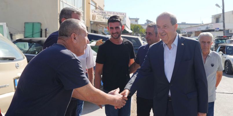 Bölge esnafı ile bir araya gelen Cumhurbaşkanı Tatar, Kıbrıs konusu hakkında bilgilendirmede bulundu.