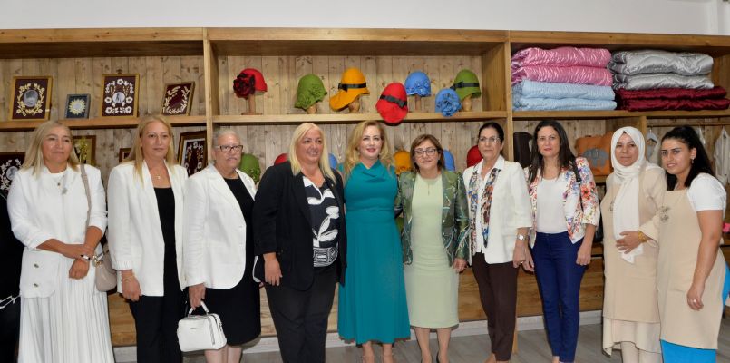 Cumhurbaşkanı Ersin Tatar'ın eşi Sibel Tatar, Gaziantep Büyükşehir Belediye Başkanı Fatma Şahin ile birlikte Pamuklu’daki El Sanatları Atölyesi'ni ziyaret etti