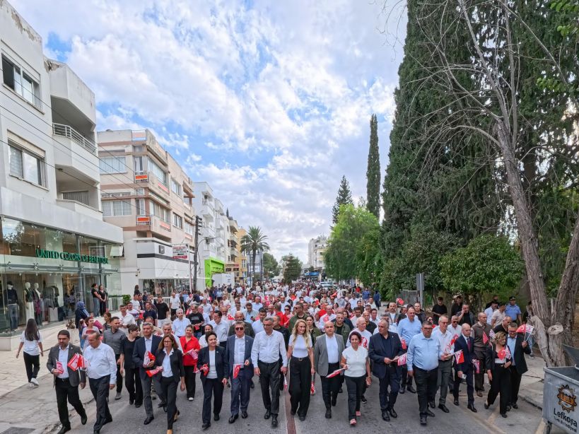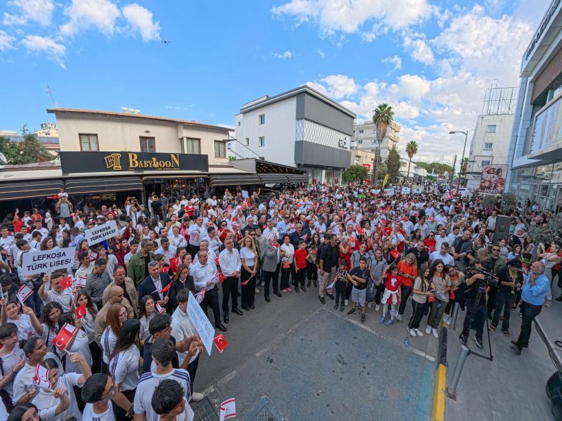 Cumhurbaşkanı Tufan Erhürman ve eşi Nilden Bektaş Erhürman, Lefkoşa’da düzenlenen kortej yürüyüşüne katıldı