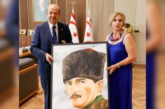 Devamı...Cumhurbaşkanı Ersin Tatar, sanatçı Sevgi Çağlar’ı kabul etti. Kabulde, Sevgi Çağlar, Ulu Önder Mustafa Kemal Atatürk’ün komutanlığı dönemini konu aldığı tablosunu Cumhurbaşkanı Tatar’a takdim etti.