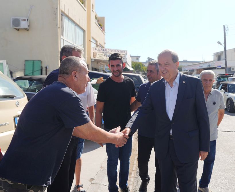 Bölge esnafı ile bir araya gelen Cumhurbaşkanı Tatar, Kıbrıs konusu hakkında bilgilendirmede bulundu.