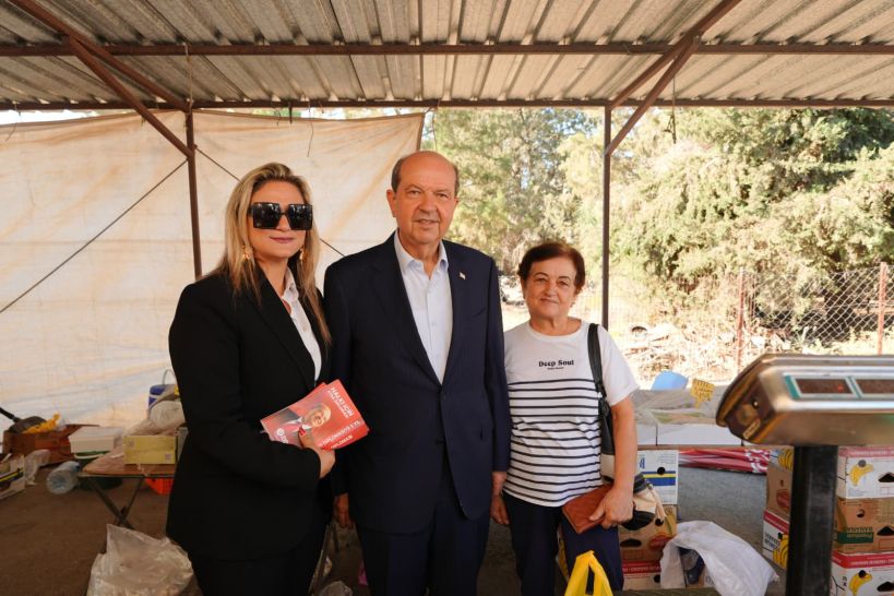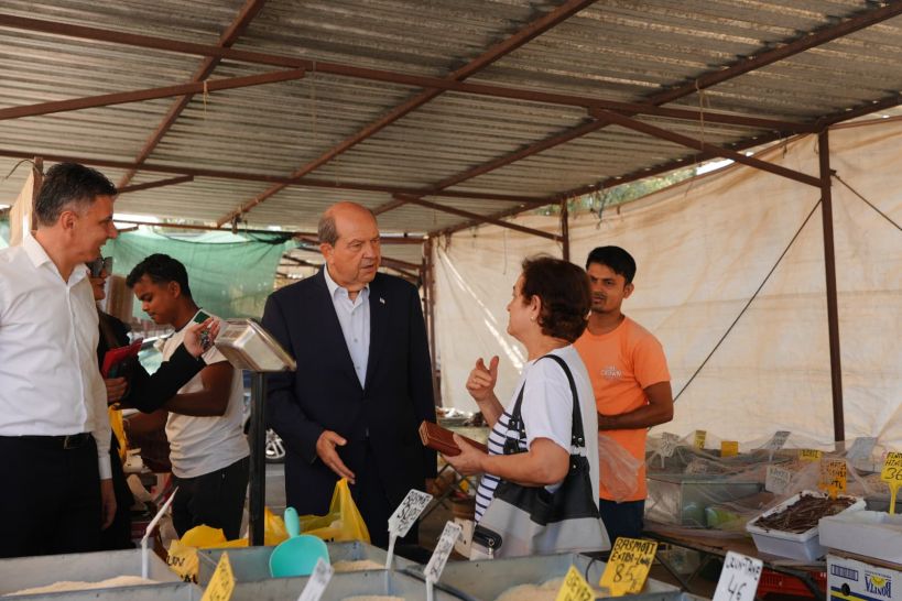 Cumhurbaşkanı Ersin Tatar, Gönyeli’de salı günleri kurulan pazarı ziyaret etti.