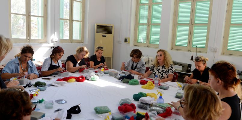 Cumhurbaşkanı Ersin Tatar’ın eşi Sibel Tatar, kursiyerle birlikte keçeden Medoş Lalesi yaptı