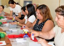 Keçe ve keçenin şekillendirilmesinde kullanılan malzemelerle birlikte ziyaretini gerçekleştiren Sibel Tatar, Keçada Projesinin bir ürünü olan Kıbrıs’ın endemik çiçeği Medoş Lalesinin keçeden broş olarak nasıl yapılacağını uygulamalı olarak göstererek, kursiyerle birlikte keçeden Medoş Lalesi yaptı.