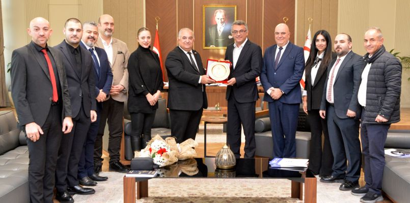 15 Kasım Üniversitesi Rektörü Prof. Dr. Mustafa Menekay da, Cumhurbaşkanı Erhürman’a görevinde başarılar diledi ve ziyaretin anısına üniversitenin plaketini takdim etti.