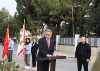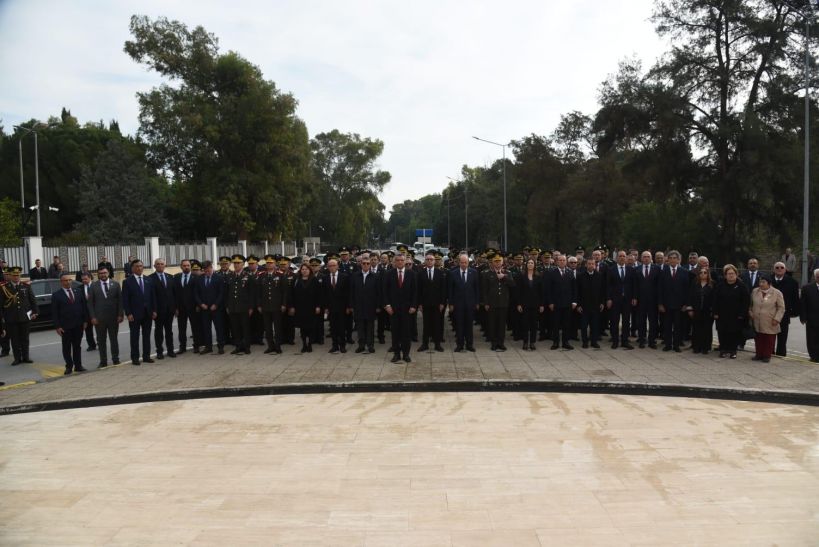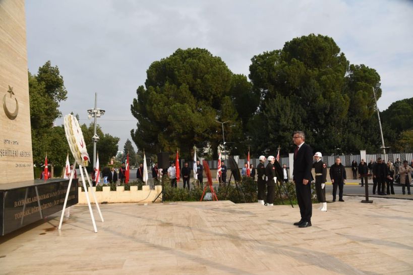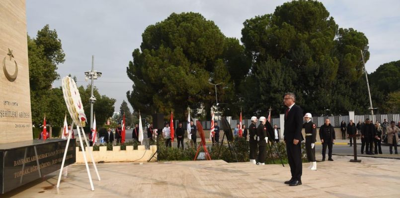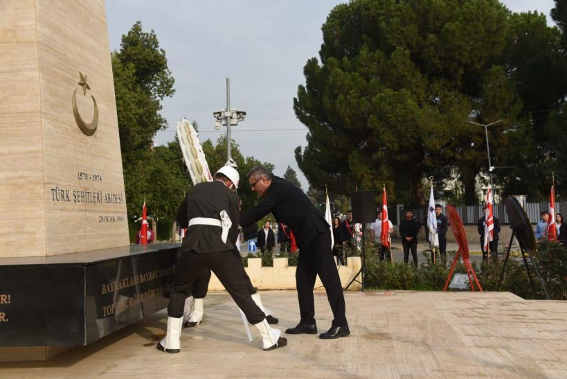 Anıta çelenk sunulmasıyla başlayan törende, saygı duruşu ve İstiklâl Marşı eşliğinde bayrakların göndere çekilmesinin ardından Cumhurbaşkanı Tufan Erhürman Anıt Özel Defteri