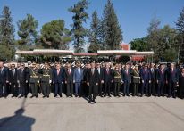 Kıbrıs Türk halkı olarak, kurduğunuz Cumhuriyet’in açtığı aydınlık yolda; halkımızın huzurunu, güvenliğini ve refahını her şeyin üzerinde tutarak, ülkemizi muasır medeniyetler seviyesine ulaştırma kararlılığımızı bugün bir kez daha aziz hatıranız önünde ifade ediyoruz.