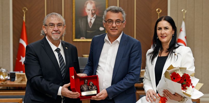 Cumhurbaşkanı Tufan Erhürman, Atatürk Öğretmen Akademisi (AÖA) Başkanı Prof. Dr. Güner Konedralı ve Başkan Yardımcısı Prof. Dr. Çise Çavuşoğlu’nu