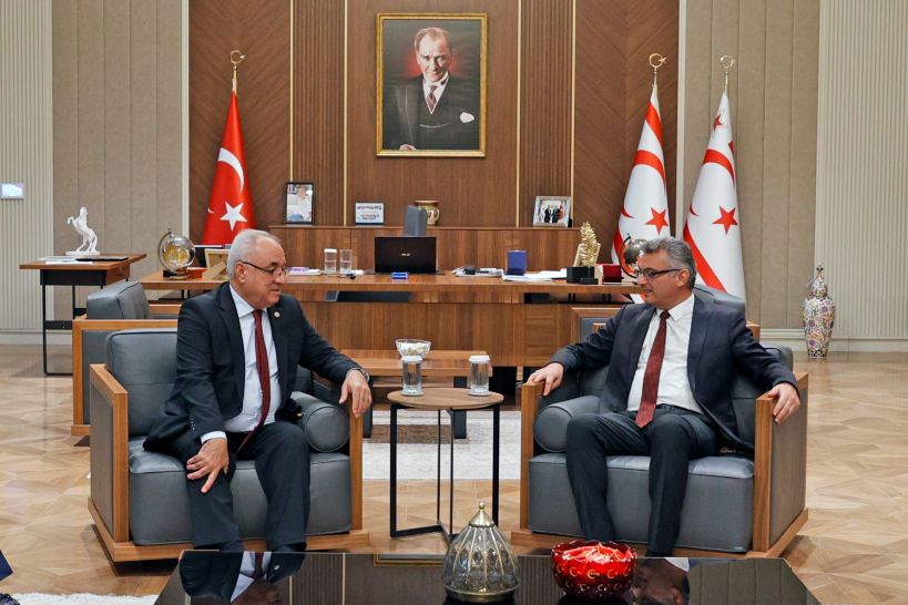 Cumhurbaşkanı Tufan Erhürman, 15 Kasım Cumhuriyet Bayramı kutlamalarına katılmak için Kuzey Kıbrıs Türk Cumhuriyeti’ne gelen Demokratik Sol Parti (DSP) Genel Başkanı Mehmet Önder Aksakal’ı kabul etti