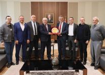 TÜRK-SEN Genel Başkanı Arslan Bıçaklı, Cumhurbaşkanı Tufan Erhürman’a görevinde başarılar diledi ve ziyaret anısına Cumhurbaşkanı Erhürman’a hediye takdimi yaptı.