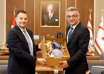 KÜB Başkanı Vehbi’ye kabulde, KÜB Genel Sekreteri Prof. Dr. Serdar Yurtsever’in yanı sıra, yönetim kurulu üyeleri; Prof. Dr. Erbuğ Çelebi, Prof. Dr. Gökçe Keçeci, Prof. Dr. Mustafa Menekay, Prof. Dr. Behiye Çavuşoğlu,