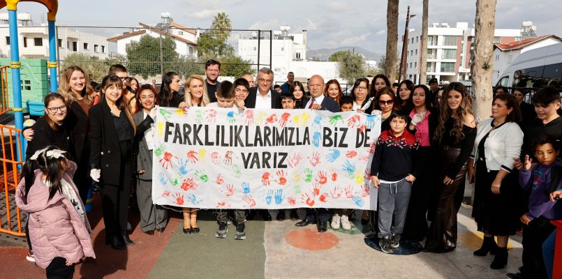 Dünya Engelliler Farkındalık Günü nedeniyle düzenlenen el boyama etkinliğine de katılan Cumhurbaşkanı Erhürman, okul bahçesinde düzenlenen etkinlikte öğrencilerle bir araya geldi.