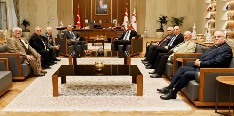 Cumhurbaşkanı Tufan Erhürman, Erenköy Mücahitler Derneği Başkanı Ahmet Yıldırım başkanlığında Muharip Dernek Başkanlarını kabul etti
