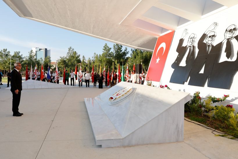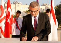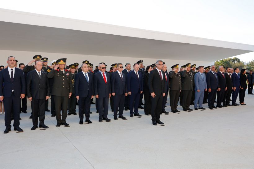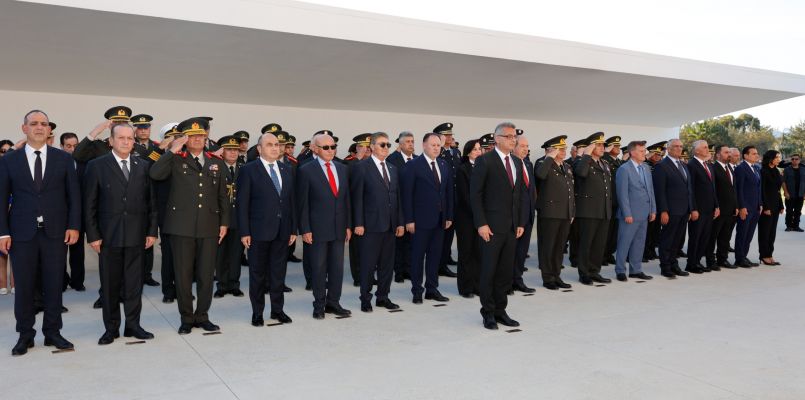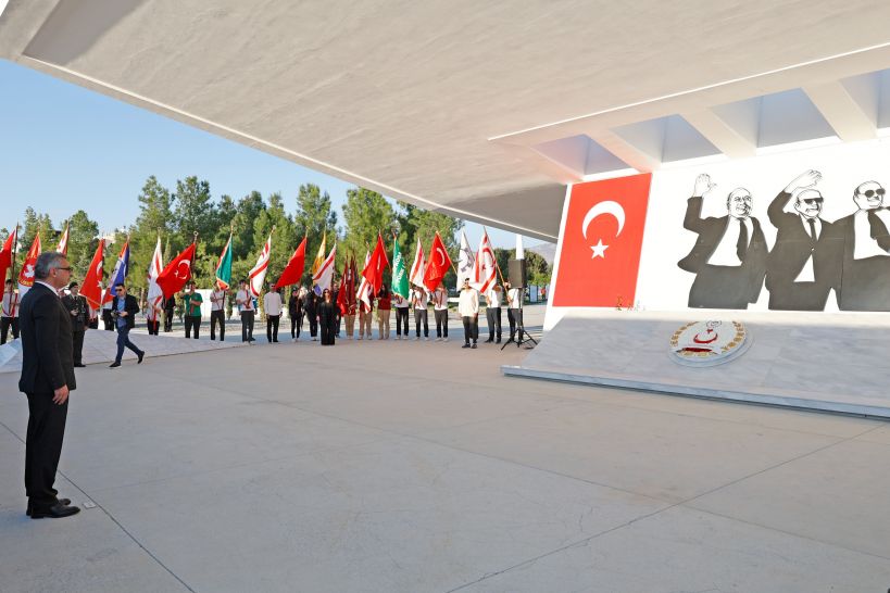 Anıta çelenk sunulmasıyla başlayan törende, saygı duruşu ve İstiklâl Marşı eşliğinde bayrakların göndere çekilmesinin ardından Cumhurbaşkanı Tufan Erhürman Anıt Özel Defteri