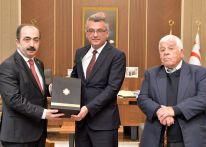 Türk Tarih Kurumu Başkanı Prof. Dr. Yüksel Özgen, Cumhurbaşkanı Tufan Erhürman’a görevinde başarılar dileyerek ziyaret anısına hediye takdim etti.