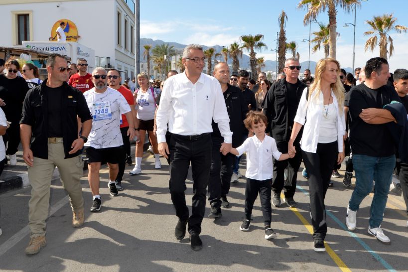 Cumhurbaşkanı Tufan Erhürman ve eşi Nilden Bektaş Erhürman, Girne Belediyesi ve KKTC Atletizm Federasyonu iş birliğinde Girne İtfaiyesi’ne araç desteği sağlamak amacıyla düzenlenen Pasha Group Girne Yarı Maratonu’nun son kategorisi olan 3 kilometrelik Halk Koşusuna katıldı.