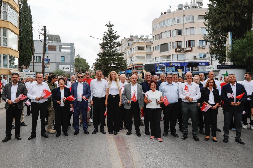 Cumhurbaşkanı Tufan Erhürman ve eşi Nilden Bektaş Erhürman, Lefkoşa’da düzenlenen kortej yürüyüşüne katıldı