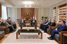Cumhurbaşkanı Tufan Erhürman, Kuzey Kıbrıs Türk Cumhuriyeti’nin 42’nci Yıl Dönümü vesilesiyle Cumhuriyet Meclisi Futbol Takımı ile dostluk maçı yapmak amacıyla ülkeye gelen, 25. Dönem Giresun Milletvekili Adem Tatlı başkanlığındaki, Türkiye Büyük Millet Meclisi (TBMM) Futbol Takımı heyetini kabul etti.