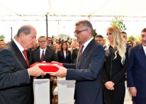Konuşmaların ardından Cumhurbaşkanlığı forsu gönderden indirilerek Erhürman’a takdim edildi, yeni Cumhurbaşkanlığı forsu göndere çekildi.